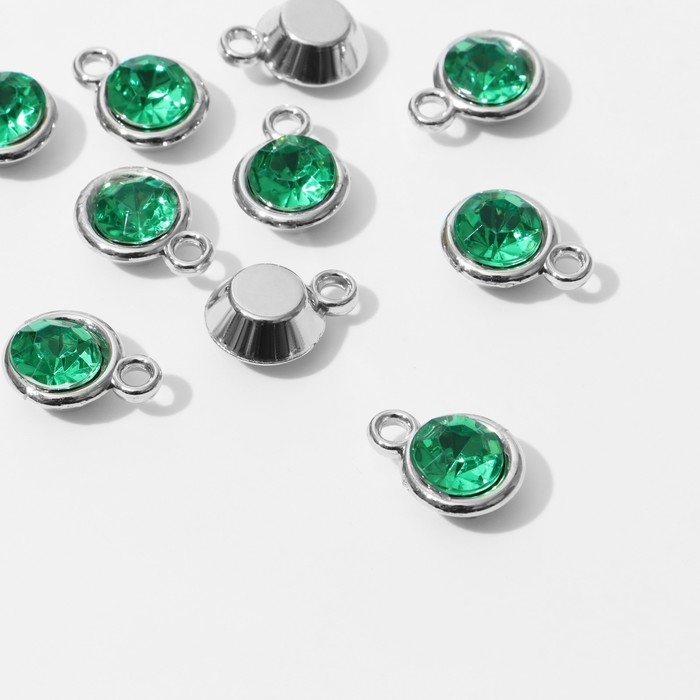 Концевик-подвеска «Круг» 1,6×1,2×0,8 см, (набор 10 шт.), цвет зелёный в серебре