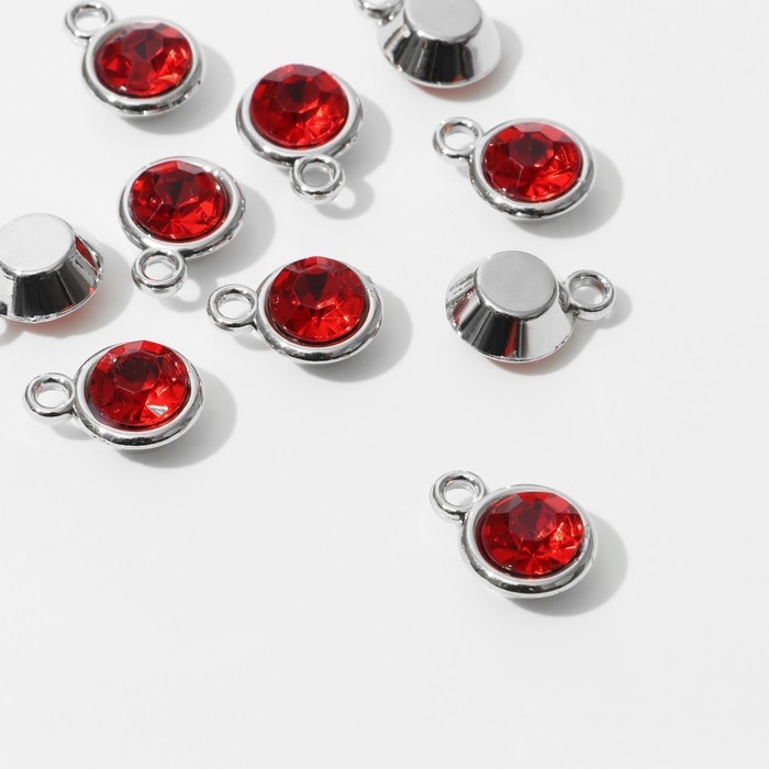 Концевик-подвеска «Круг» 1,6×1,2×0,8 см, (набор 10 шт.), цвет красный в серебре
