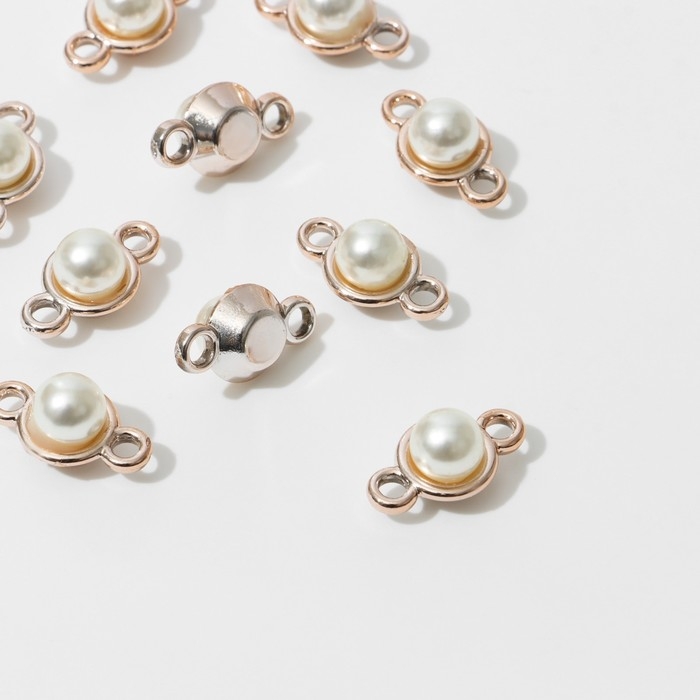 Коннектор «Жемчуг» шарик 1,9×1,1×1 см, (набор 10 шт.), цвет белый в золоте