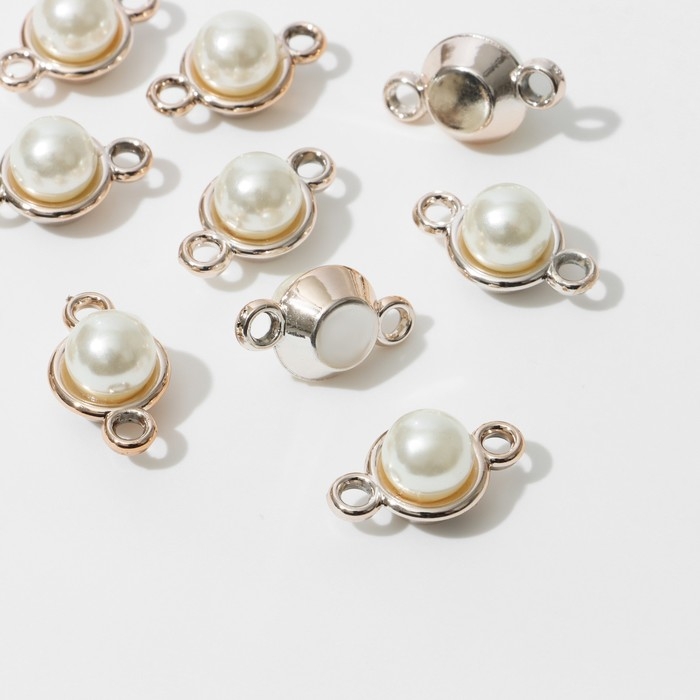 Коннектор «Жемчуг», шарик 2,2×1,3×0,8 см, (набор 10 шт.), цвет белый в золоте