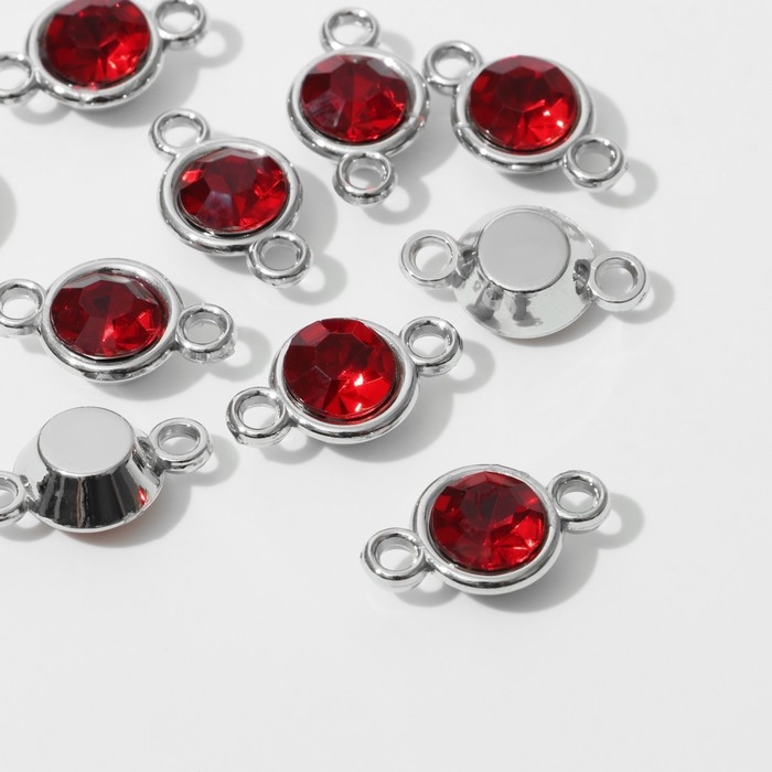 Коннектор «Круг» 2,4×1,5×0,7 см, (набор 10 шт.), цвет красный в серебре