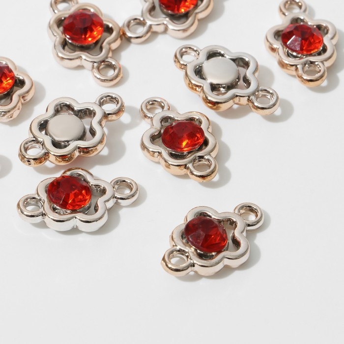 Коннектор «Цветок» 2,4×1,5×0,7 см, (набор 10 шт.), цвет красный в золоте