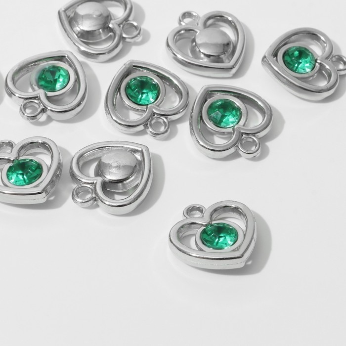 Подвеска «Сердце» 2,4×2,2×0,8 см, (набор 10 шт.), цвет зелёный в серебре