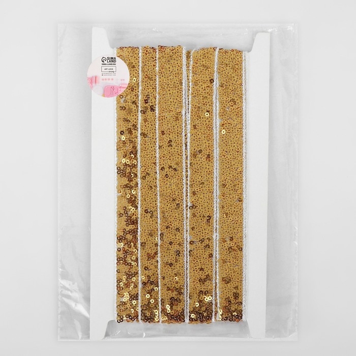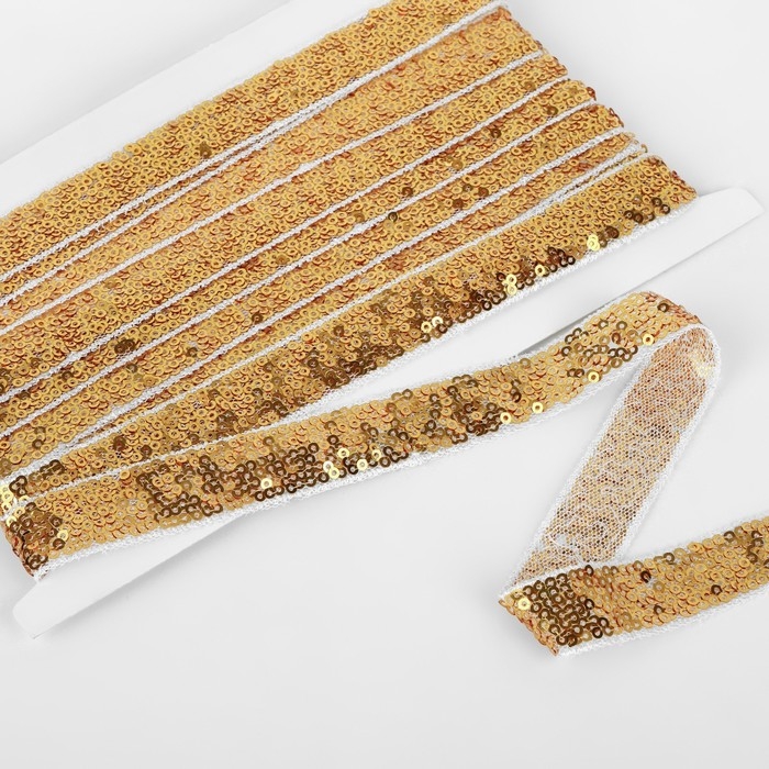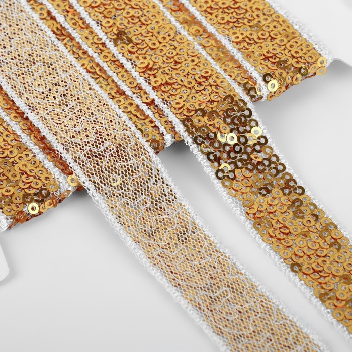 Тесьма декоративная с пайетками, 20 мм, 4,5 ± 0,5 м, цвет золотой