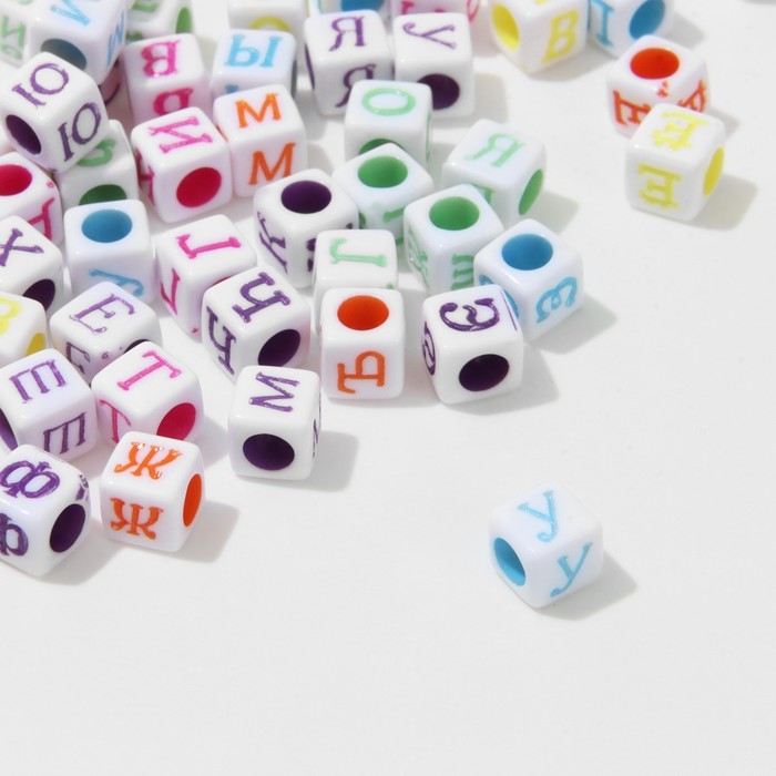 Бусина из акрила «Буквы русские» МИКС, кубик 6×6 мм, (набор 10 г), цвет МИКС