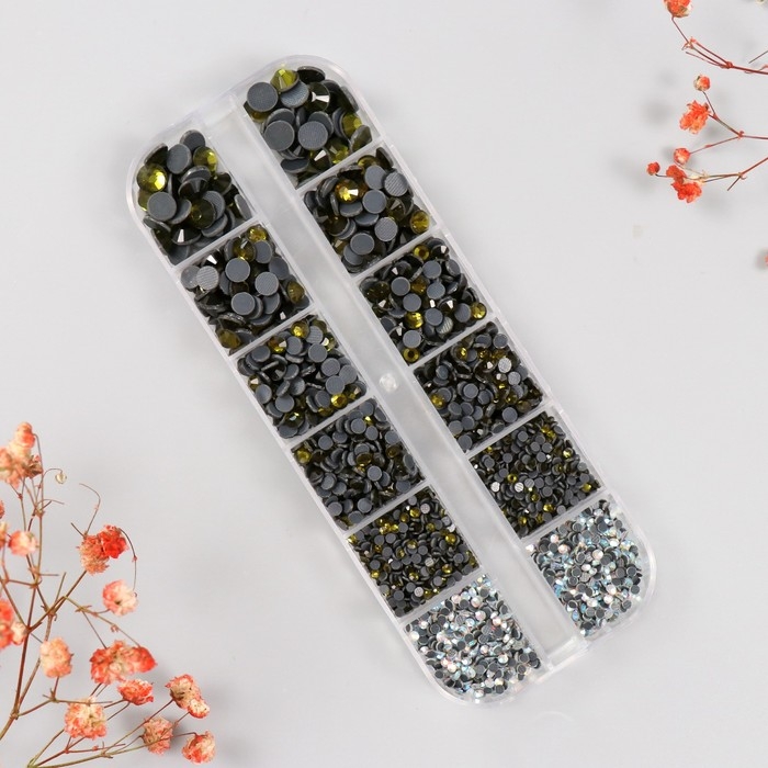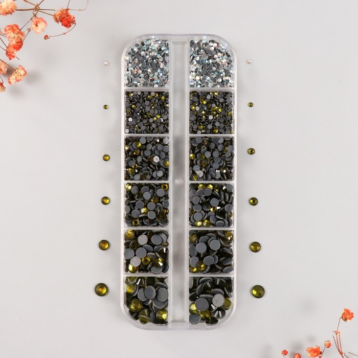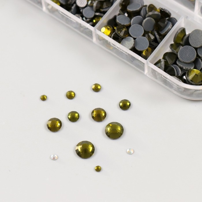 Декор для творчества стекло "Стразы усечённый конус. Оливковый" d=2-6,5 мм н-р 2600 шт