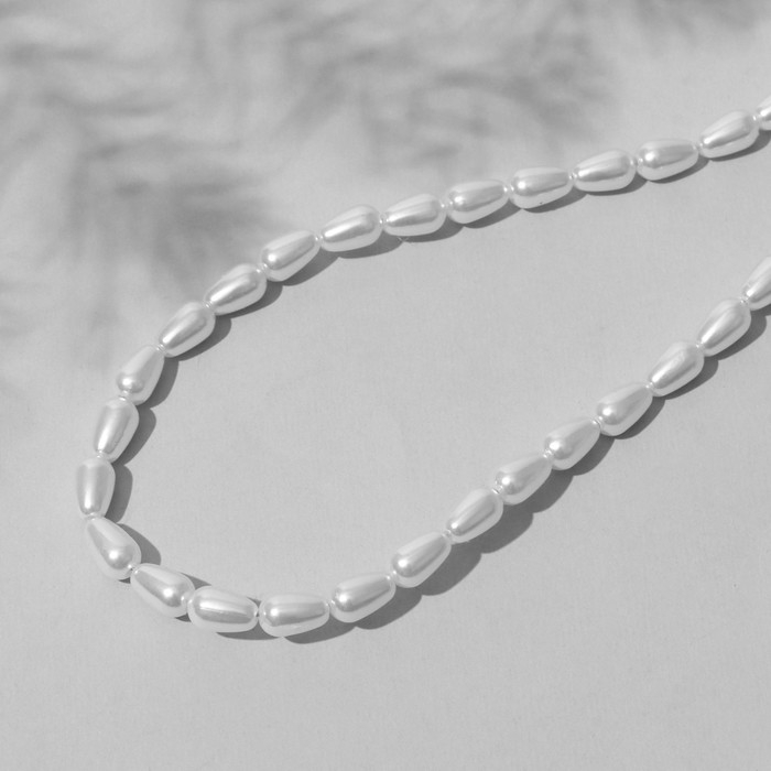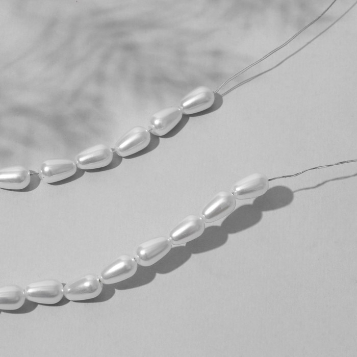 Бусины пластиковые на нити «Жемчуг» капля 0,8×0,4×0,4 см, (набор 110 шт.), цвет белый