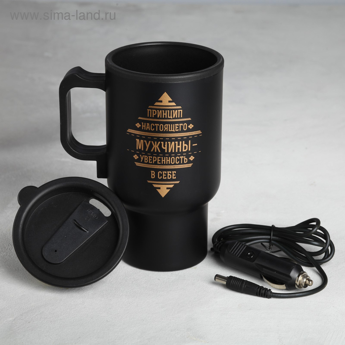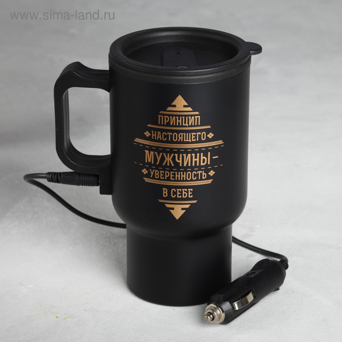 Термокружка, 450 мл, Автомобильная «Принцип настоящего мужчины», сохраняет тепло 3 ч, с подогревом от прикуривателя