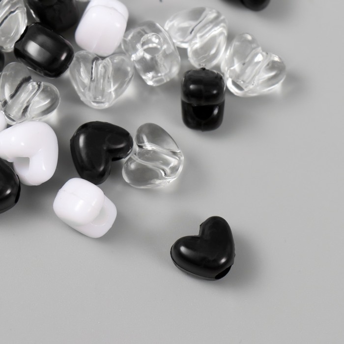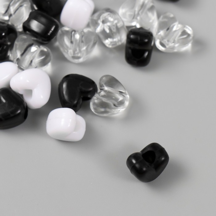Бусины пластик "Сердце. Чёрный, белый, прозрачный" набор 20 гр 1,2х0,9х0,8 см