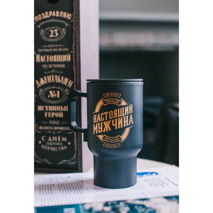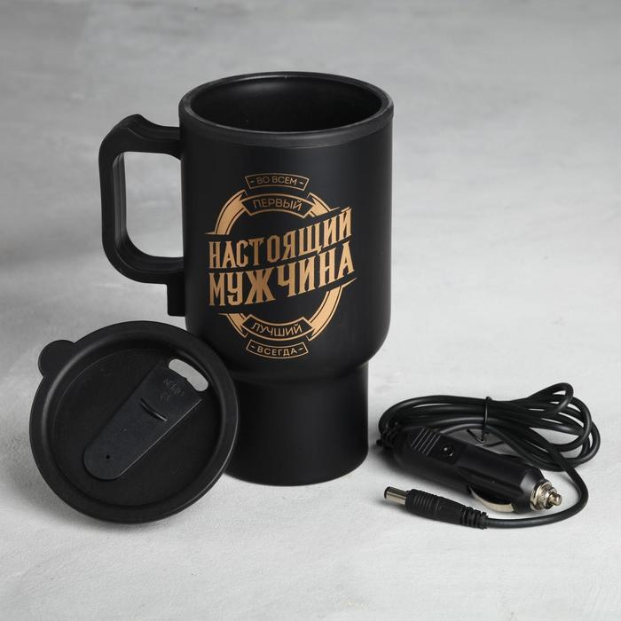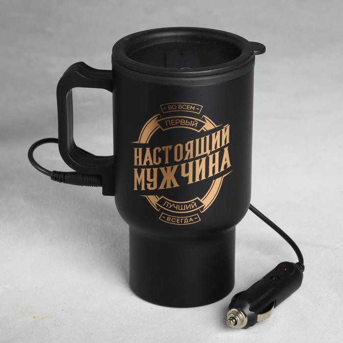 Термокружка, 450 мл, Автомобильная «Настоящий мужчина», сохраняет тепло 3 ч, с подогревом от прикуривателя