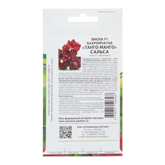 Семена цветов Виола бахромчатая "Танго-Манго Сальса F1", 10 шт