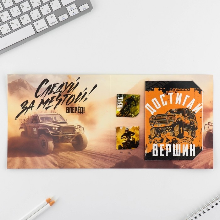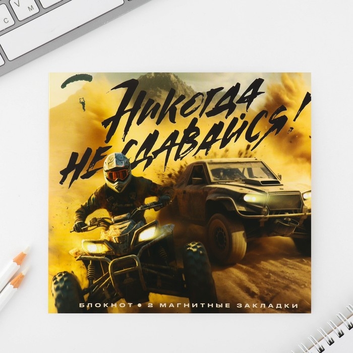 Подарочный набор блокнот и магнитные закладки 2 шт. «Никогда не сдавайся»