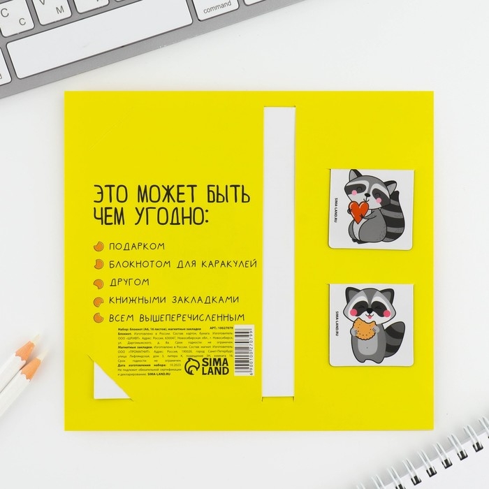 Подарочный набор блокнот и магнитные закладки 2 шт. «Будь как енот»
