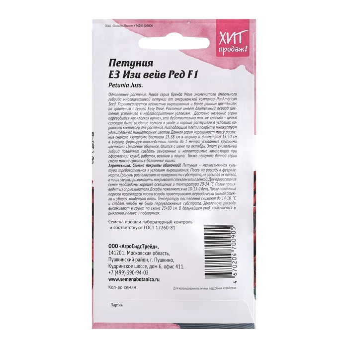 Создайте яркие акценты в вашем саду с петунией "Е3 Изи Вейв Ред F1"!