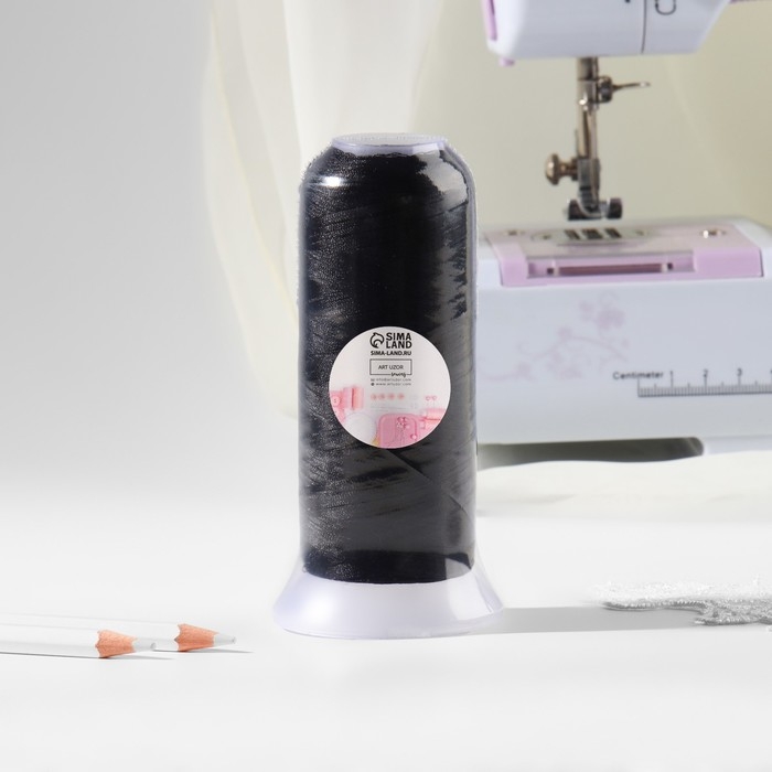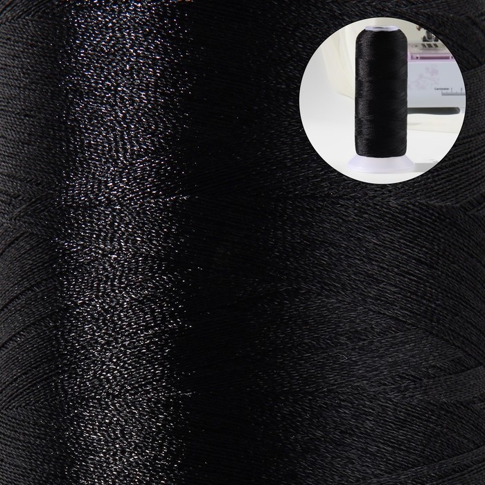 Нить атласная, 120D/2, 2700 м, цвет чёрный