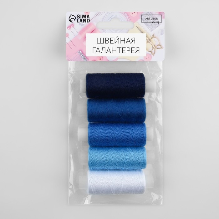 Набор ниток, 40/2, 183 м, 5 шт, цвет синий спектр
