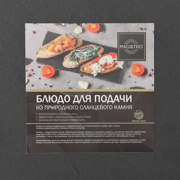 Доска из натурального сланцевого камня поможет эффектно подать блюдо. Стильная рельефная поверхность изделия красиво сочетается с другими предметами сервировки и подходит ко всем видам блюд.