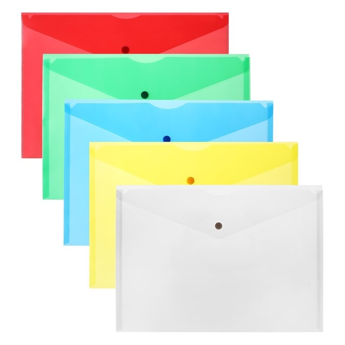 Набор папок-конвертов на кнопке 10 штук, А4, 150 мкм, Calligrata Standard, прозрачные, микс