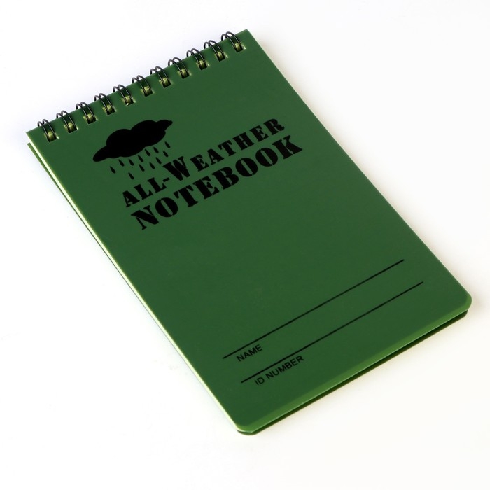 Листы влагостойкого блокнота выполнены из бумаги со специальным покрытием, которое позволяет ему выдерживать неблагоприятные погодные условия. Блокнот также устойчив к поту и грязи.