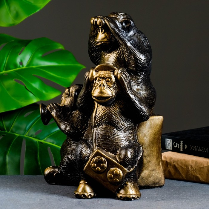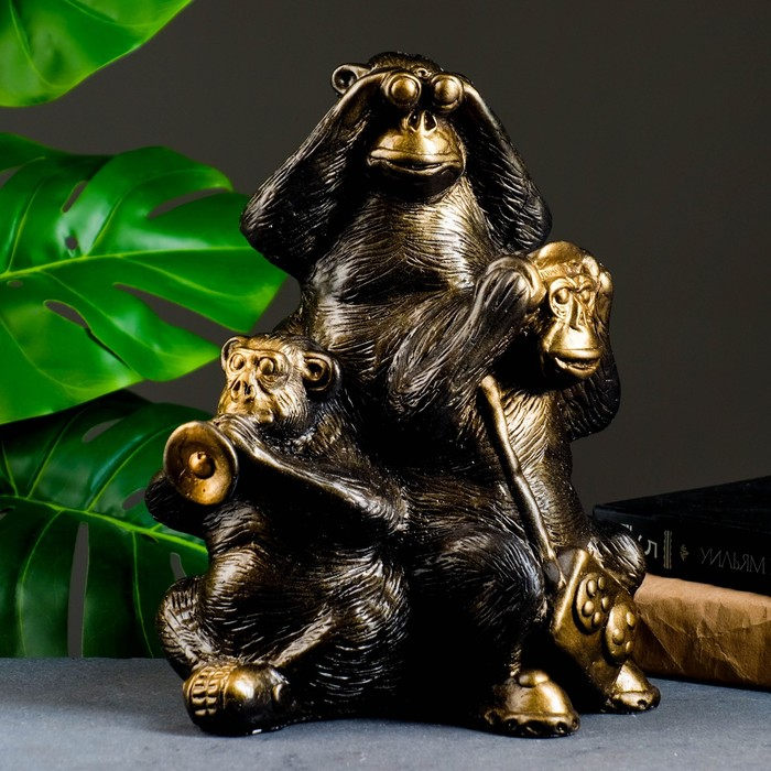 Копилка "Обезьяны: всё слышу, всё вижу, всё скажу" бронза, 30см