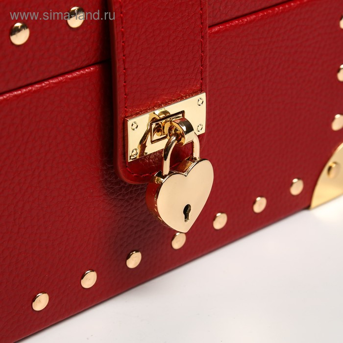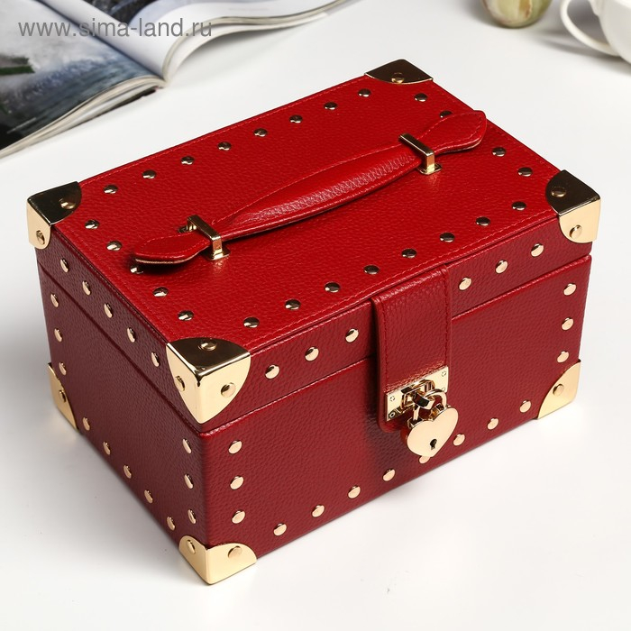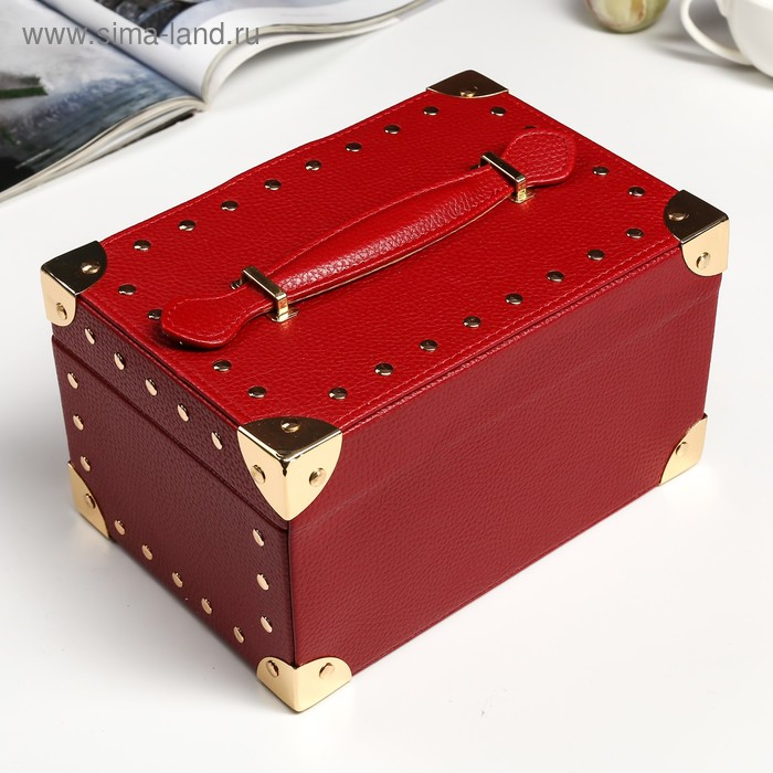 Шкатулка кожзам для украшений "Бордовая матовая с заклёпками" 12,5х22х15,5 см