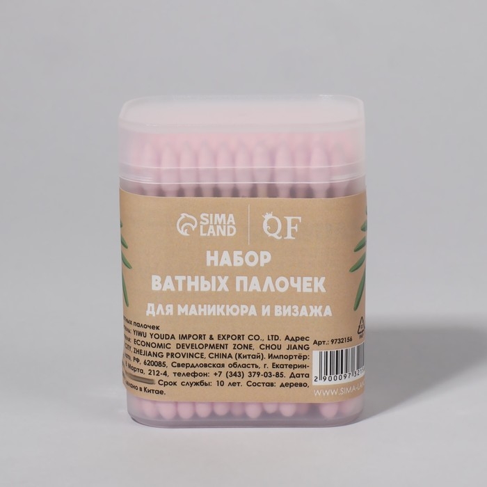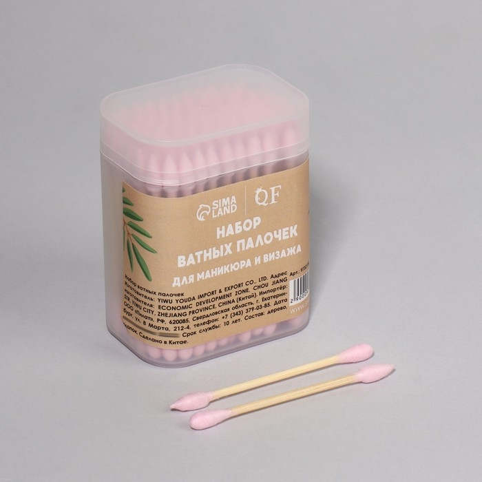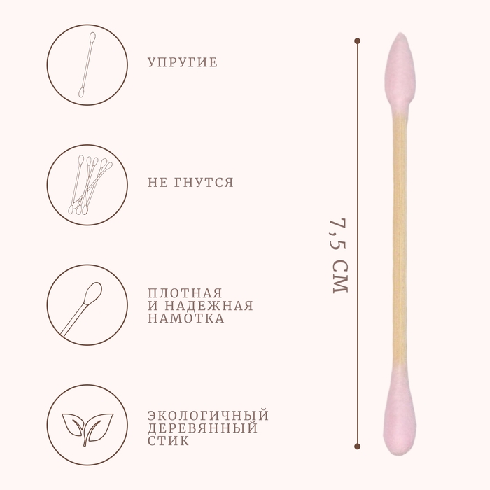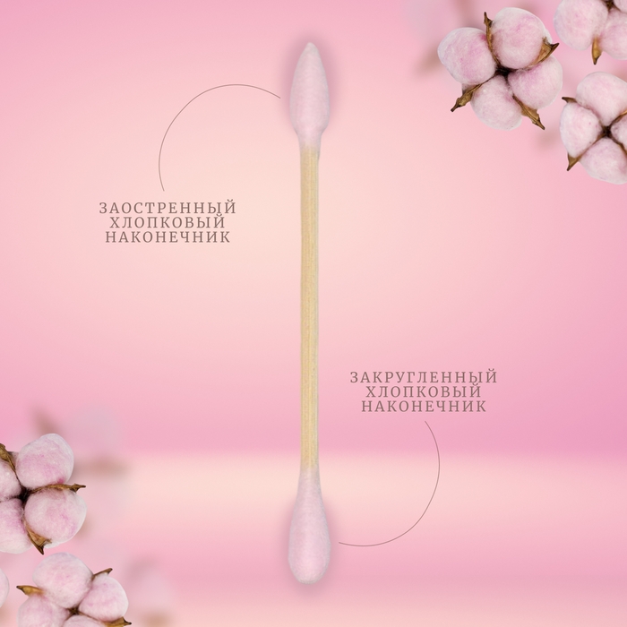 Ватные палочки на деревянной основе, заострённые, 7, 5 см, 100 шт, цвет розовый