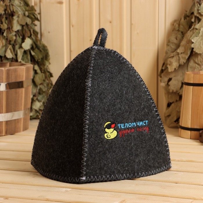 Шапка для бани с вышивкой "Телом чист душою молод" , серая, фасовка 5шт