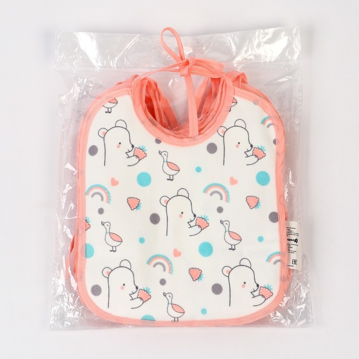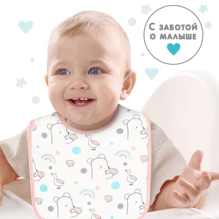 Нагрудник детский Крошка Я, 17х20 см (фасовка 10 шт., розовая окантовка)