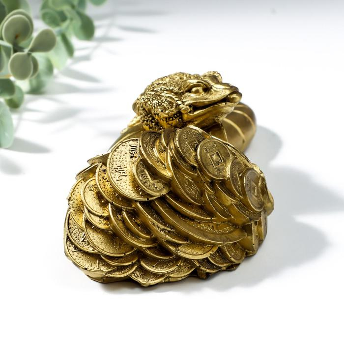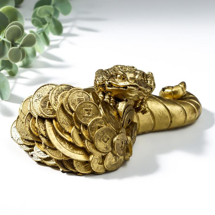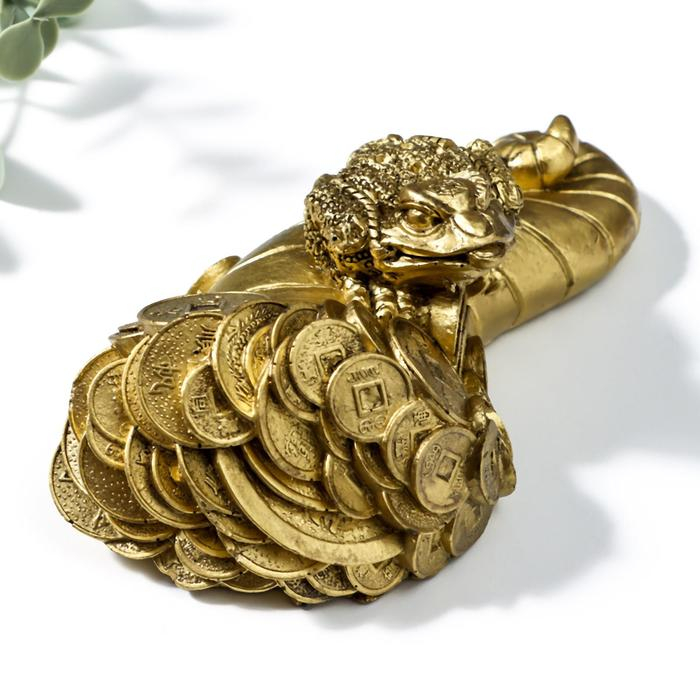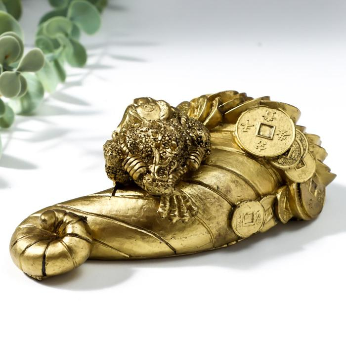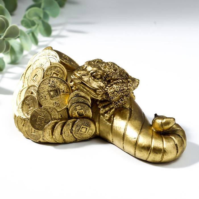 Нэцке полистоун под бронзу "Жаба на роге изобилия" 4,5х6,5х12,5 см