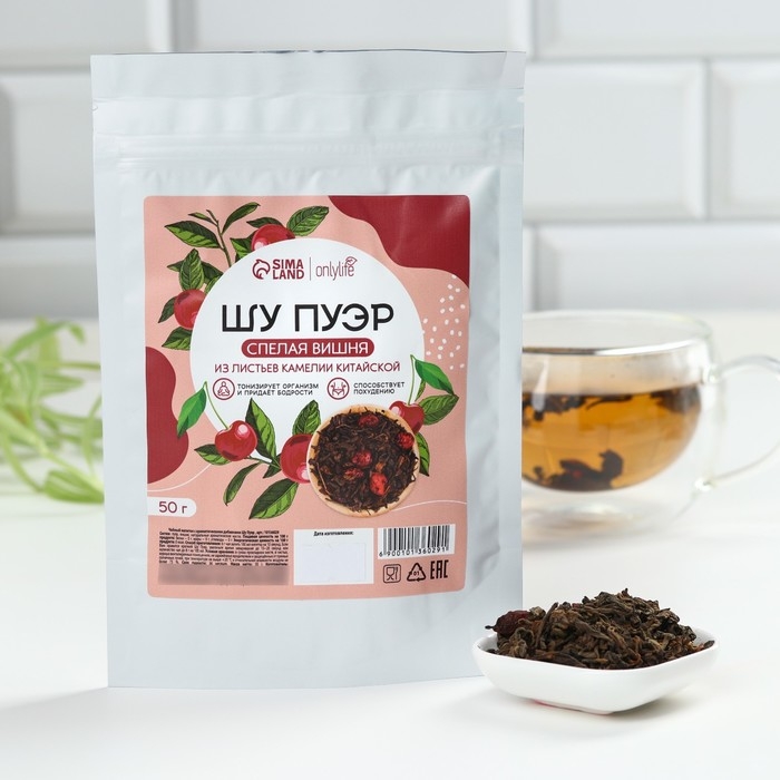 Чай Шу Пуэр с вишней, тонизирует и способствует похудению, 50 г.