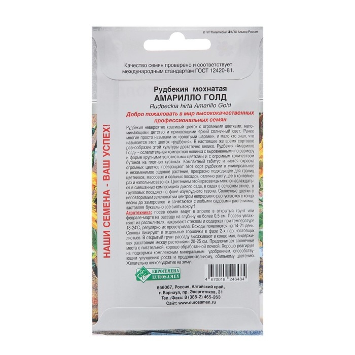 Семена Рудбекия мохнатая "Амарилло Голд", 3 шт