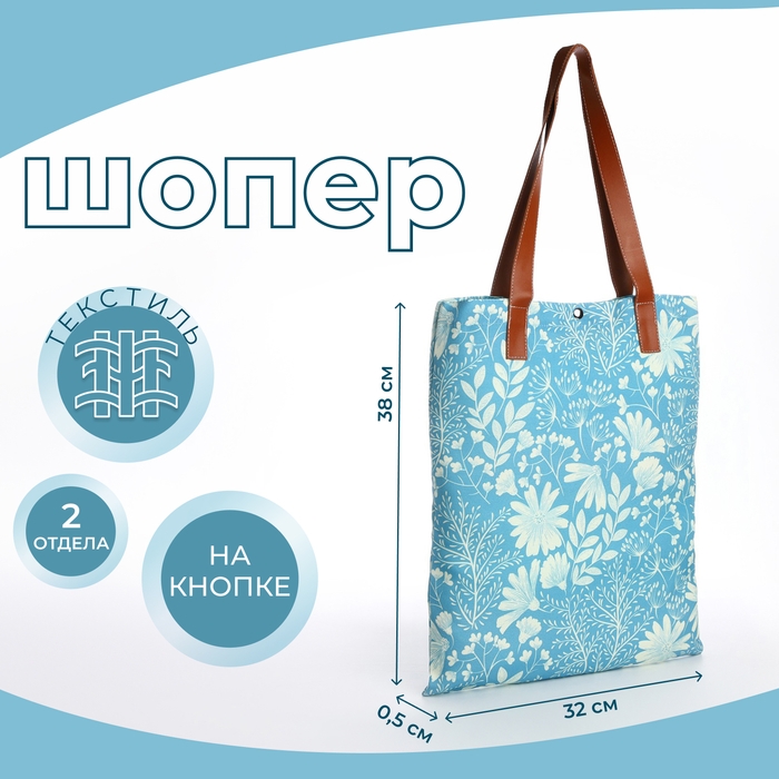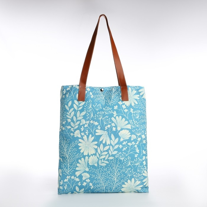 Шопер без застёжки, из текстиля, цвет голубой
