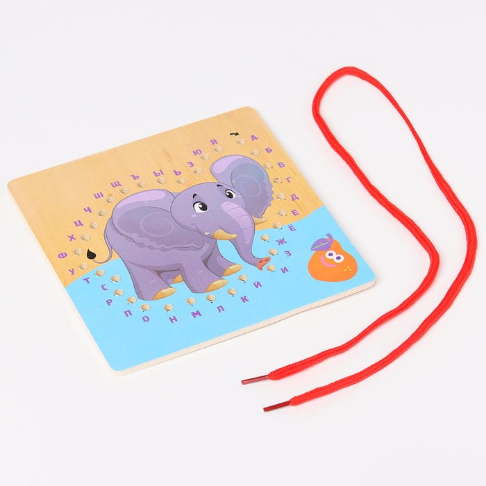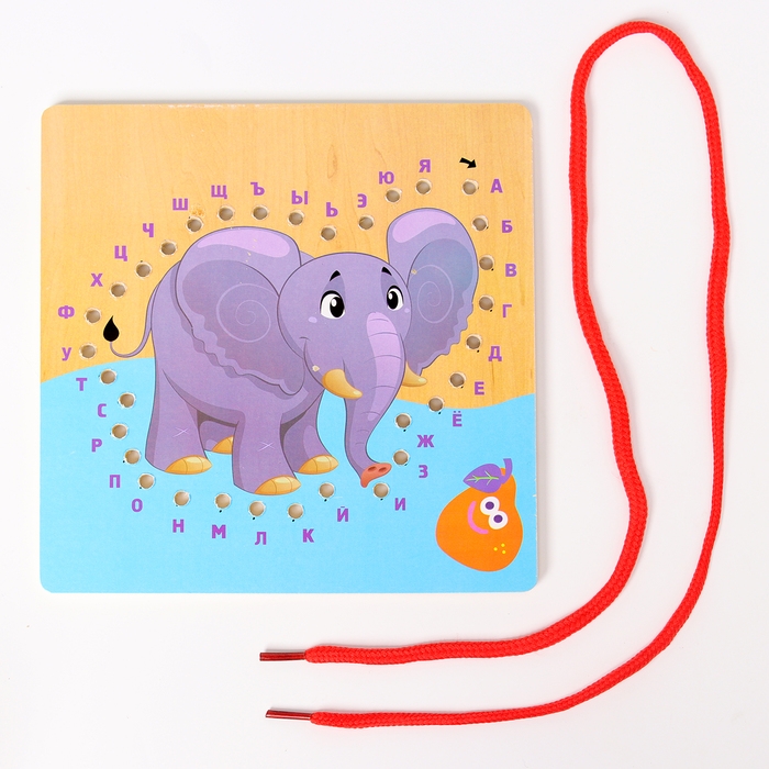 Шнуровка слоник «Учим алфавит» 14,5 × 14,5 × 0,5 см