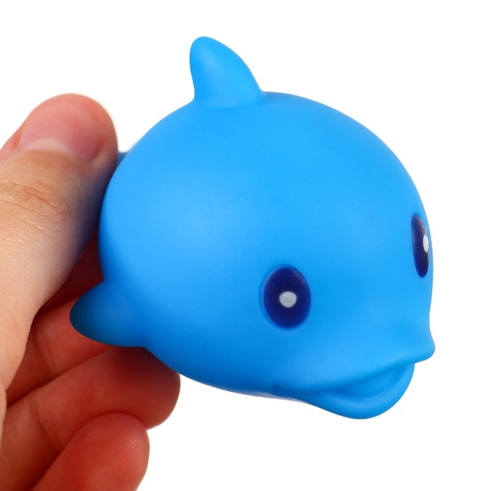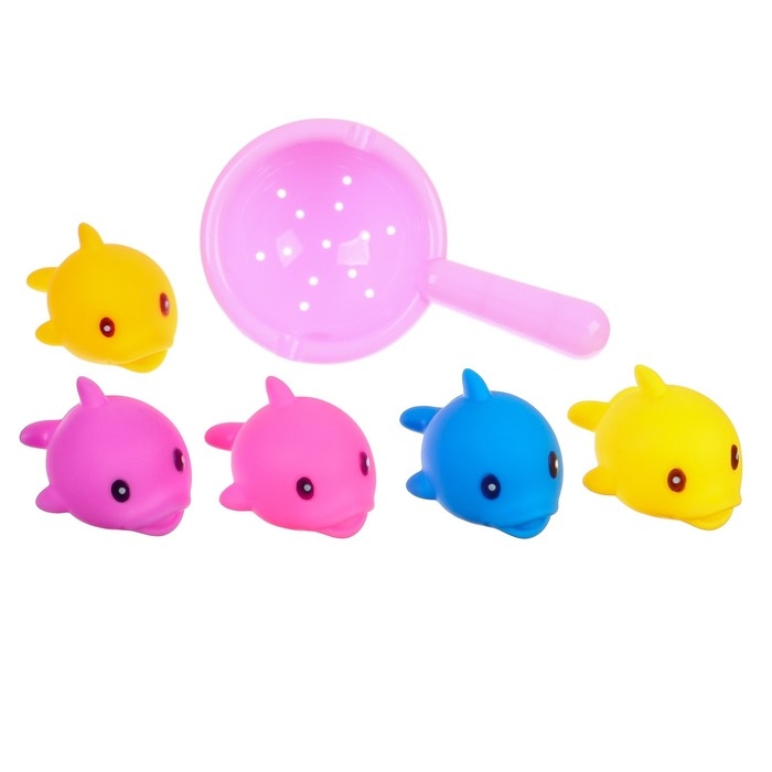 Набор резиновых игрушек для ванны «Поймай дельфина», 8 см, с пищалкой, 6 шт, сачок, Крошка Я
