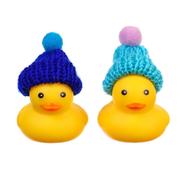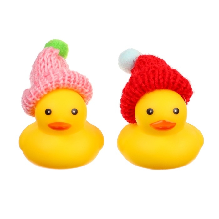 Набор резиновых игрушек для ванны «Уточки в шапке», 4 см, с пищалкой, 2 шт., Крошка Я
