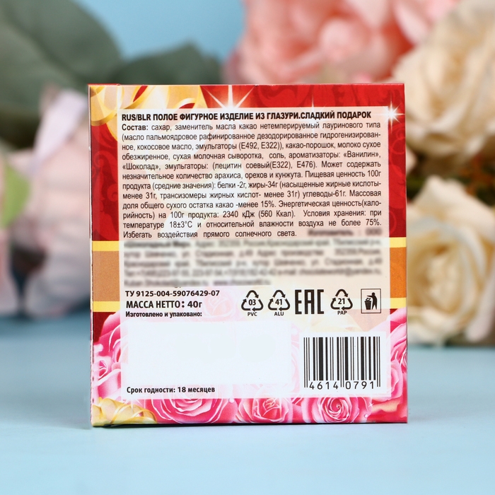 Такую сладость в красивой упаковке можно использовать как необычное дополнения к основному подарку, так и как универсальный презент на День святого Валентина ребенку или взрослому. Маленькая сладость из кондитерской глазури - это вкусное лакомство абсолютно для всех возрастов, особенно, в качестве вкусняшки на десерт.