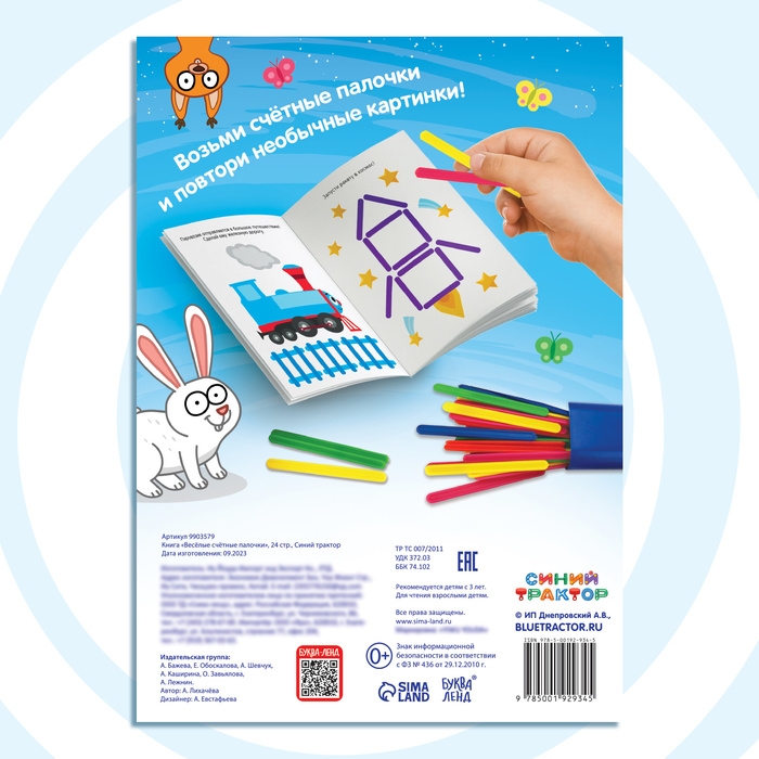 Набор «Весёлые счётные палочки»: книга 24 стр., 17 × 24 см, + 100 палочек, Синий трактор