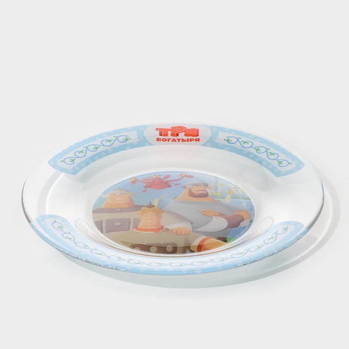 Тарелка стеклянная «Три Богатыря» порадует маленького поклонника мультфильма.