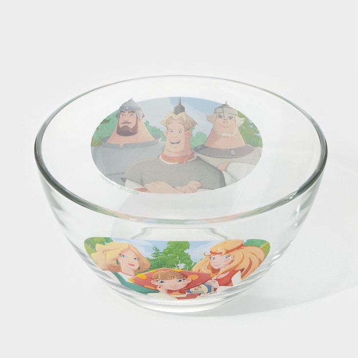 Салатник стеклянный «Три Богатыря. Царевны» порадует маленького поклонника мультфильма.