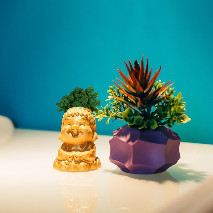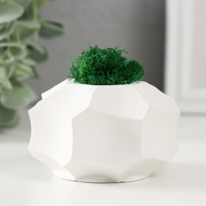 Кашпо бетонное "Грани" со мхом белый 7,5х7,5х5 см (мох зеленый стабилизированный)