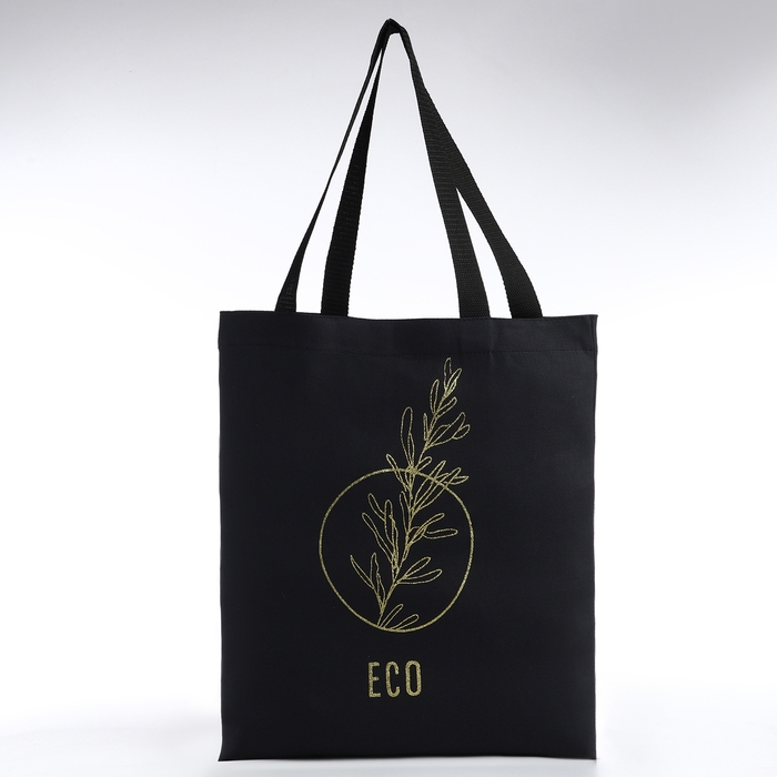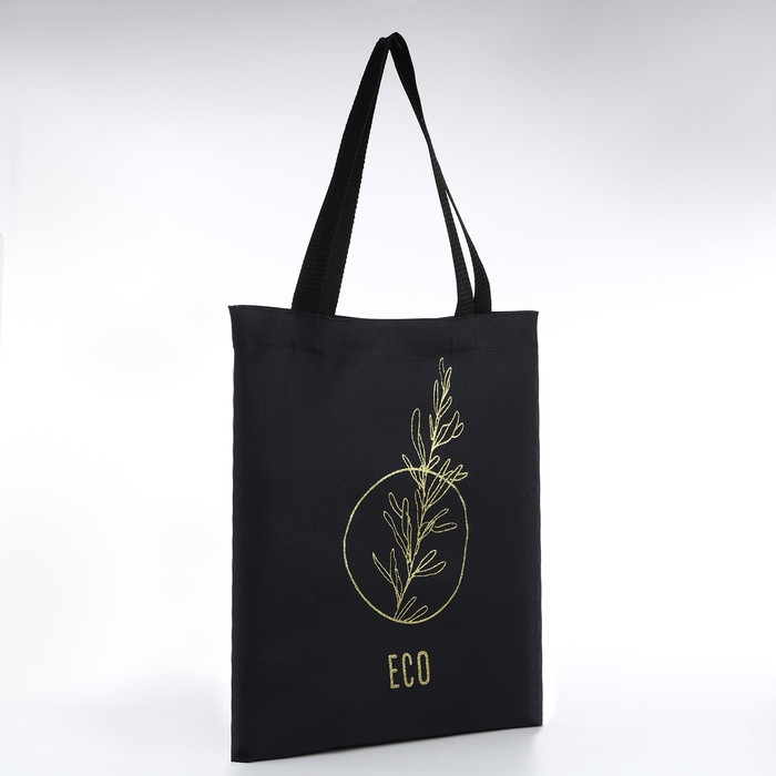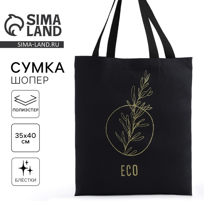 Шопер "Эко", 35х0,5х40, принт с блёстками, без подклада, чёрный