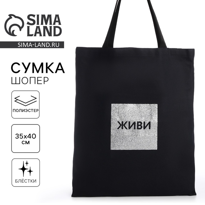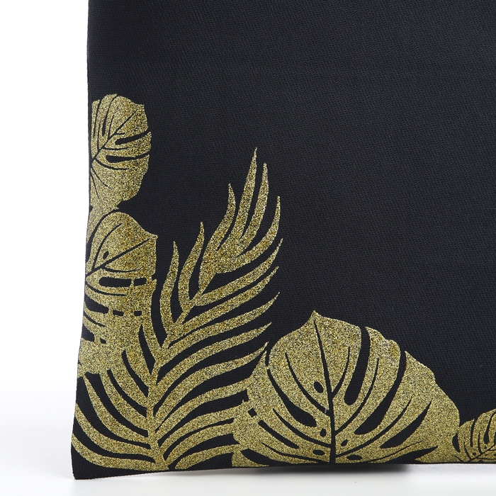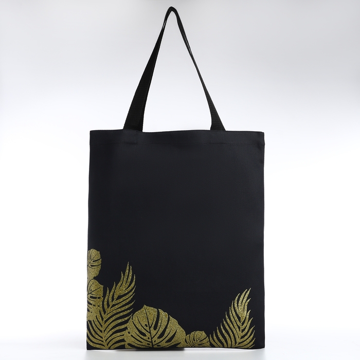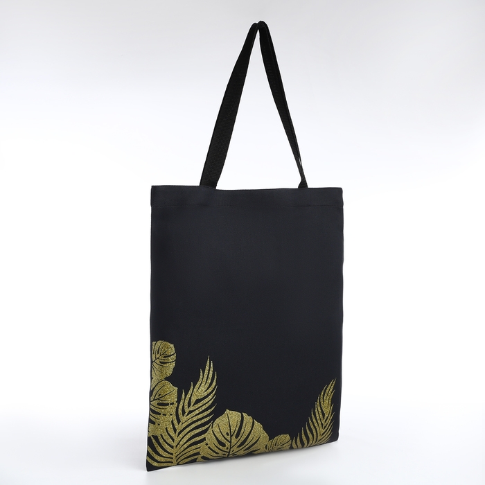 Шопер "Тропики", 35х0,5х40, принт с блестками, без подклада, чёрный