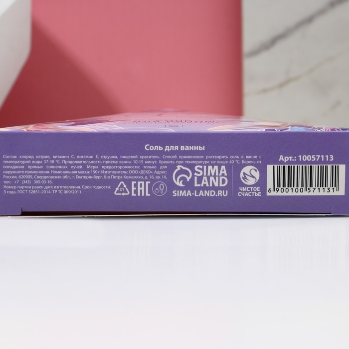 Соль для ванны «С 8 Марта!», 150 г, аромат лаванды, ЧИСТОЕ СЧАСТЬЕ