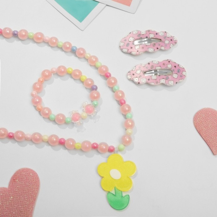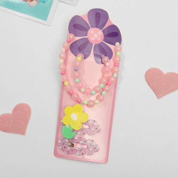 Комплект детский «Выбражулька» 3 предмета: 2 заколки, кулон, цветы, цветной