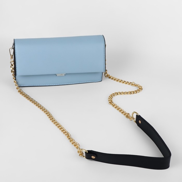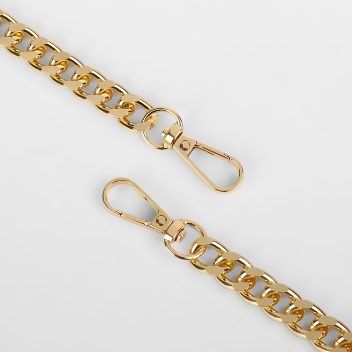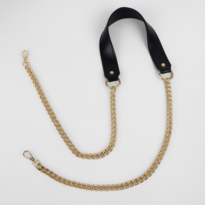Ручка для сумки, с плоскими цепочками и карабинами, 120 × 3 см, цвет чёрный/золотой