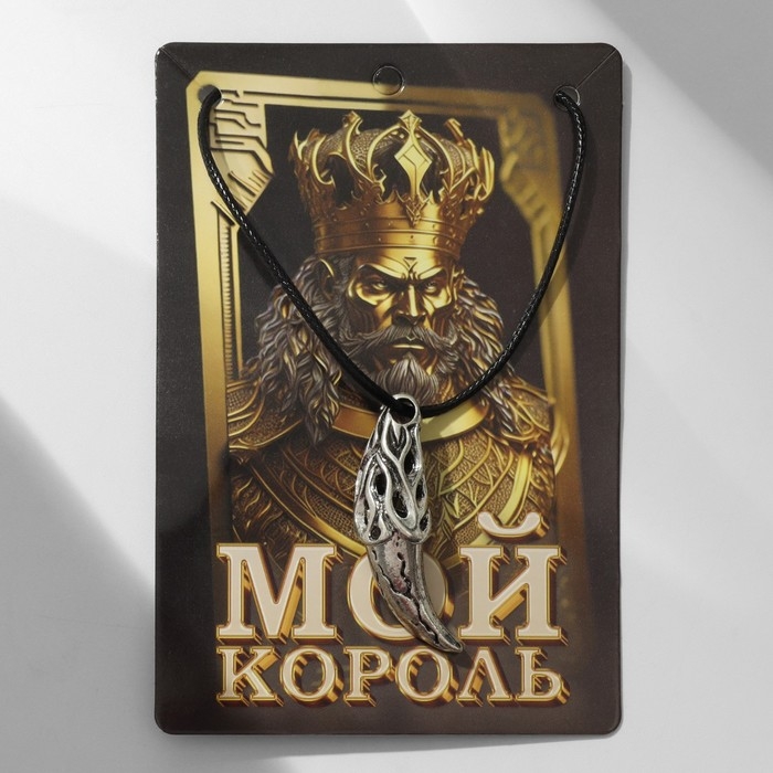 Кулон мужской «Коготь» узор, цвет чернёное серебро на чёрном шнурке, 50 см