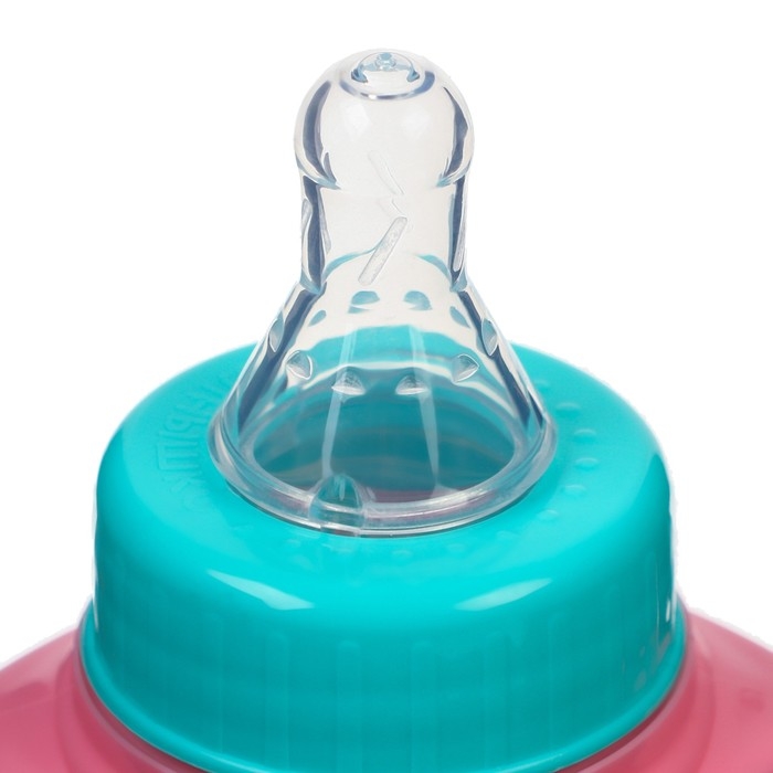 Бутылочка для кормления, классическое горло, 250 мл., от 0 мес., цилиндр, с ручками, цвет бирюзовый/розовый