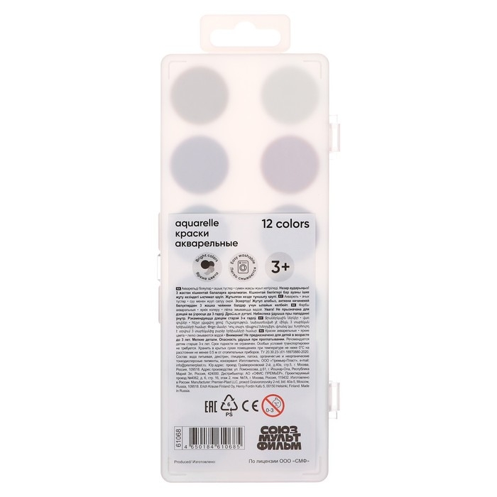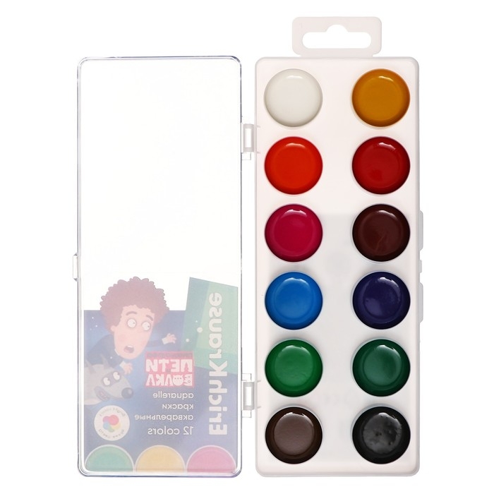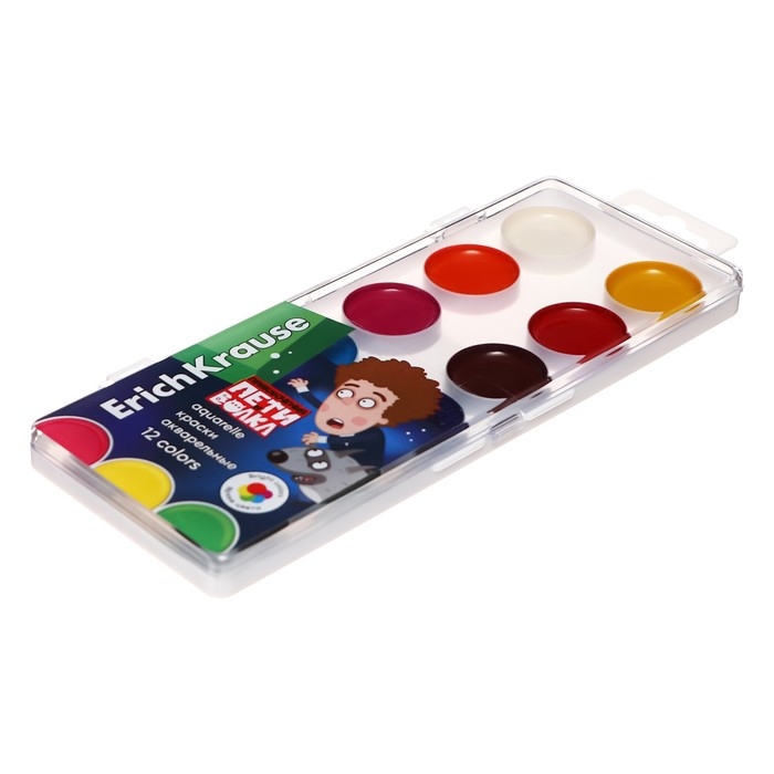 Акварель 12 цветов ErichKrause "Приключения Пети и Волка", без кисти, пластиковая коробка, европодвес