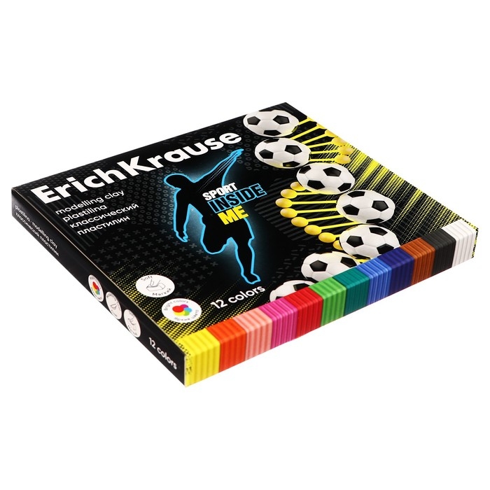 Пластилин со стеком 12 цветов, 180 г, ErichKrause "Sport DNA", в картонной упаковке