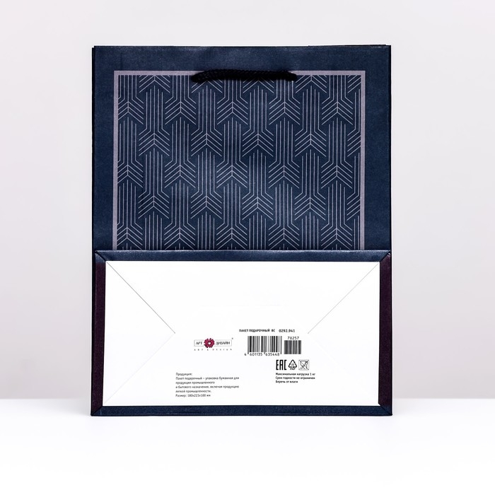 Подарочный пакет "Синий узор", 18 х 22,3 х 10 см